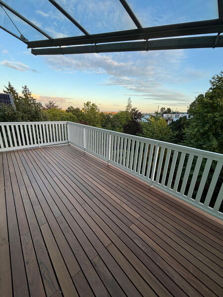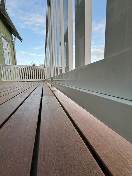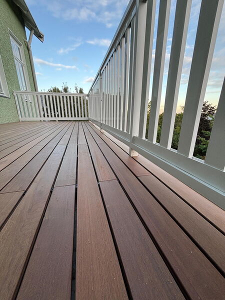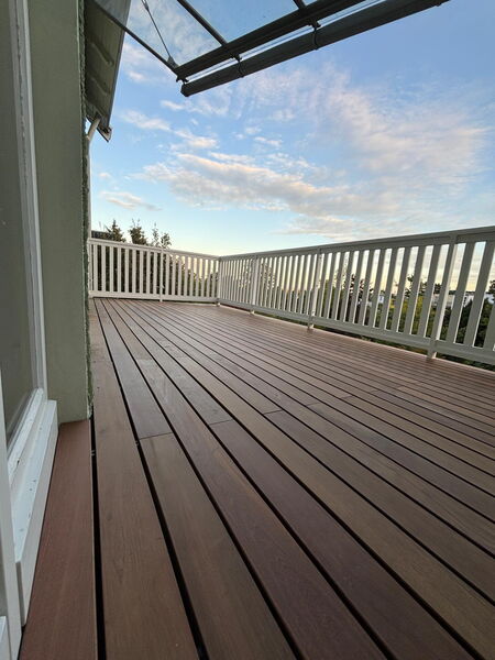 Die Kundin hat schön länger überlegt, die alte Holzterrasse durch neues Material zu ersetzen. Nach einem Jahr und mehreren Holzspänen, die sich sich eingezogen hat, war es doch soweit. Die Wahl fiel auf IPE, in der Hoffnung, daß die Terrasse ewig halten möge.