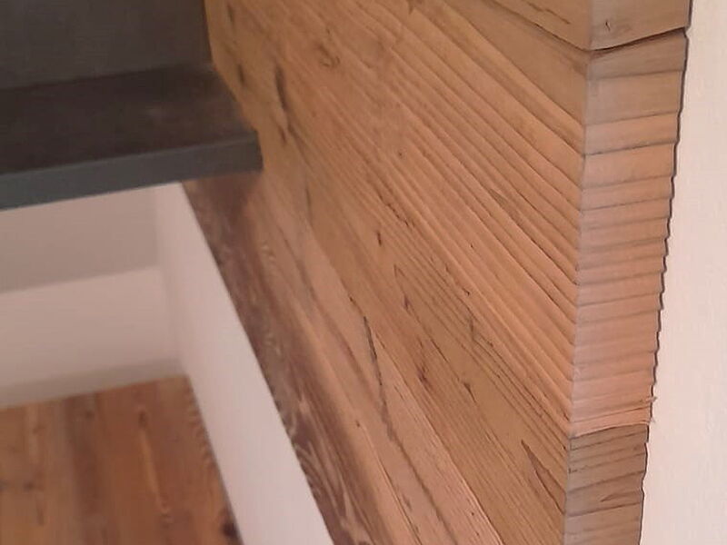 Der Kundenwunsch war es, aus einer Dachstube ein heimeliges Wohnzimmer mit Altholz zu machen und so ein wenig Alpenflair nach Wien zu bringen.